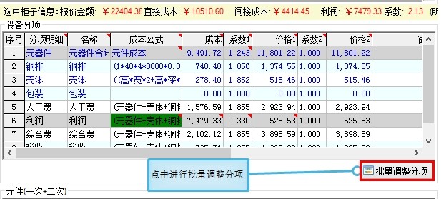 在设备视图中点击批量调整分项按钮即可弹出批量调整分项功能页面。如下图: